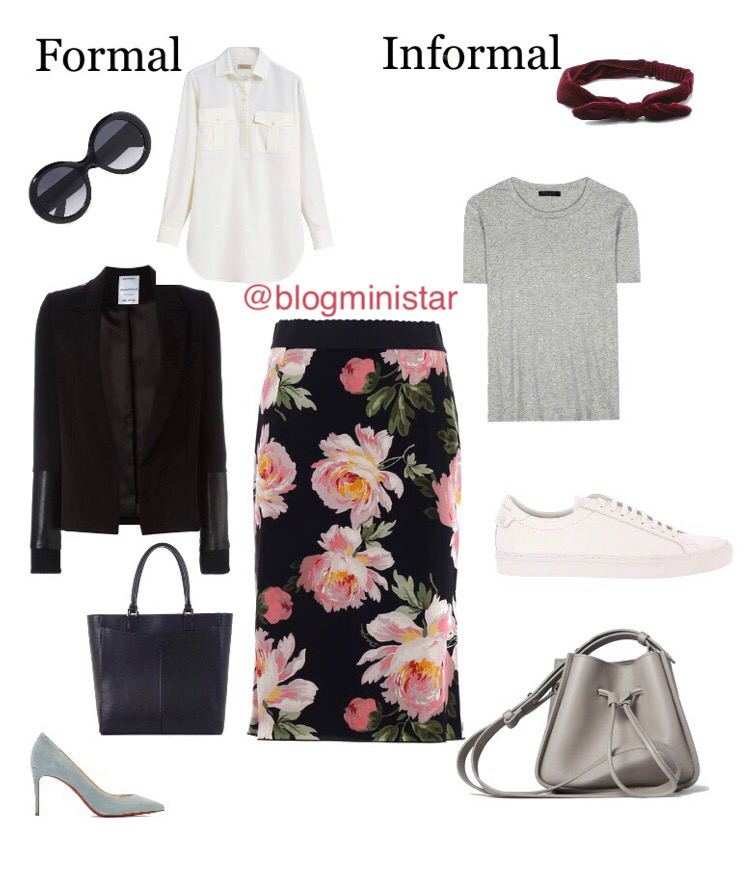 Sabe aquela saia que você tem no armário e acha que só pode usar de um jeito? Então, deixa eu te mostra uma saia floral usada na versão formal e outra na informal, ou seja, mesma peça usada de forma diferente.
